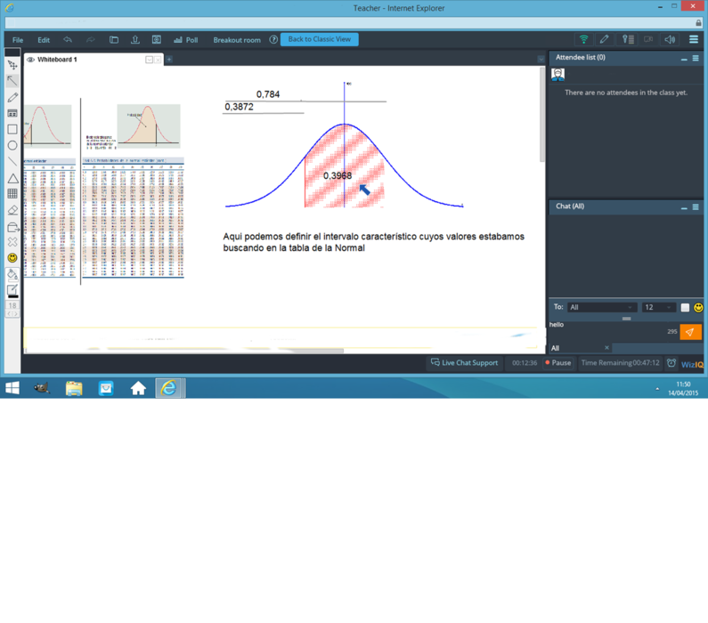 Esta habilitado permanentemente el chat escrito para los estudiantes y para el profesor de forma que pueden hacerse preguntas sin interrumpir el desarrollo de la clase y el profesor puede gestionar el momento mas oportuno para sus respuestas y aclaraciones.